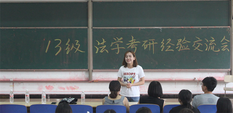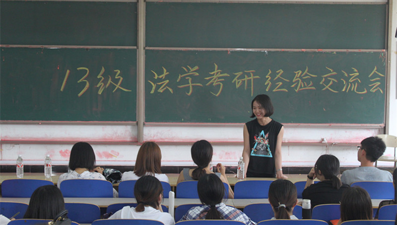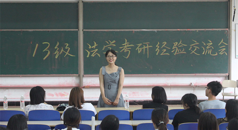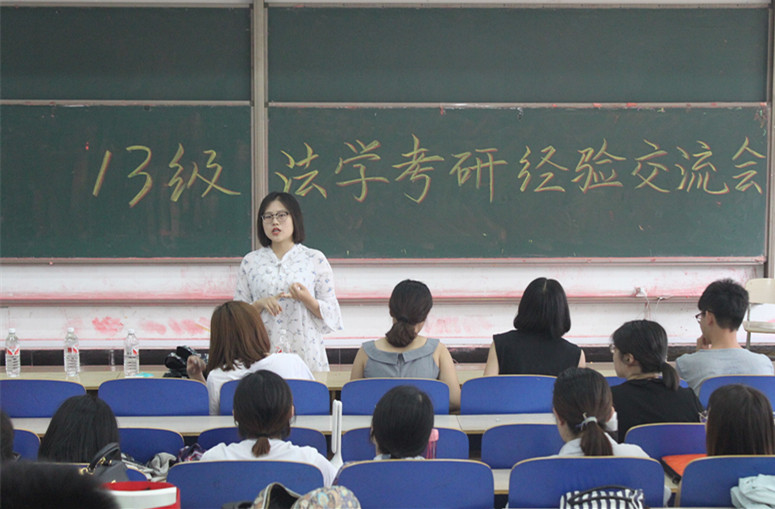 6月20日下午,文法系法学教研室于一教101举行法学专业考研经验交流会,出席本次交流会的有法学教研室主任吴淑霞、辅导员梁丹、13级优秀考研员工代表吴娜、吴琼、邹琰婷,李娟、黄子华以及14级法学员工。