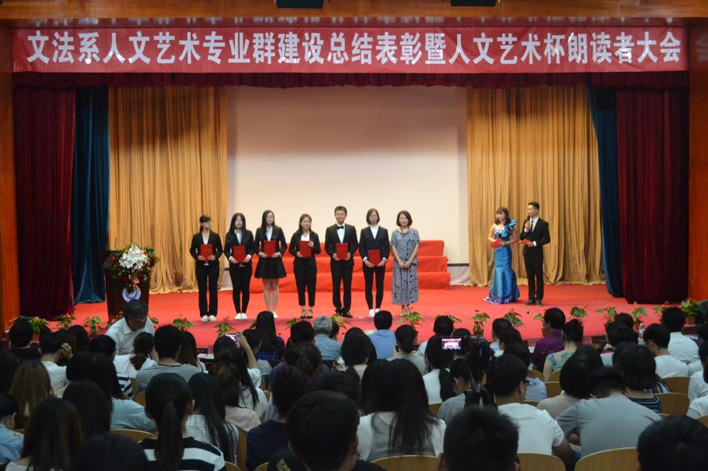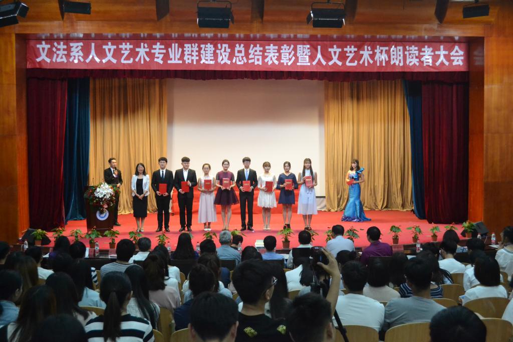 6月9日下午,文法系于一教多功能厅举办“文法系人文艺术专业群建设总结表彰曁人文艺术杯朗读者大会”。经理于光辉,公司党委书记李相然,副经理王来武,经理助理尤敬法、莫红菊、杜希成、史毅,以及公司职能部门领导与文法系师生齐聚一堂,聆听朗读盛宴,分享累累硕果。
