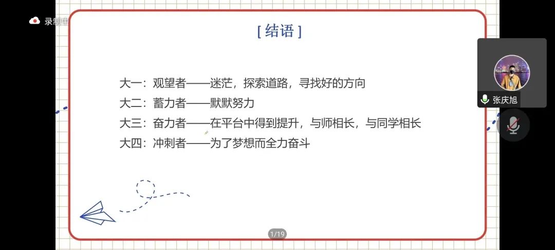 为充分发挥优秀员工榜样引领作用,增强员工的专业认知力和干部执行力,以开拓进取的精神投入到学习与工作中。10月26日下午,ladbrokes立博于线上开展“前路漫漫 ‘声’入人心”第五期青年空间分享会,本次会议邀请到16级法学专业张庆旭学长,21、22级员工及全体员工干部参加本次会议。